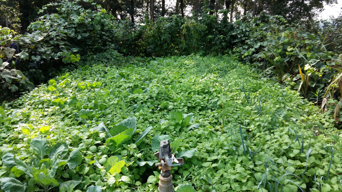We hebben over de honderd eetbare gewassen in de tuin. Van het merendeel hebben we ook werkelijk kunnen eten maar er zijn ook wel gewassen waar we nog nooit opbrengst hebben gehad.