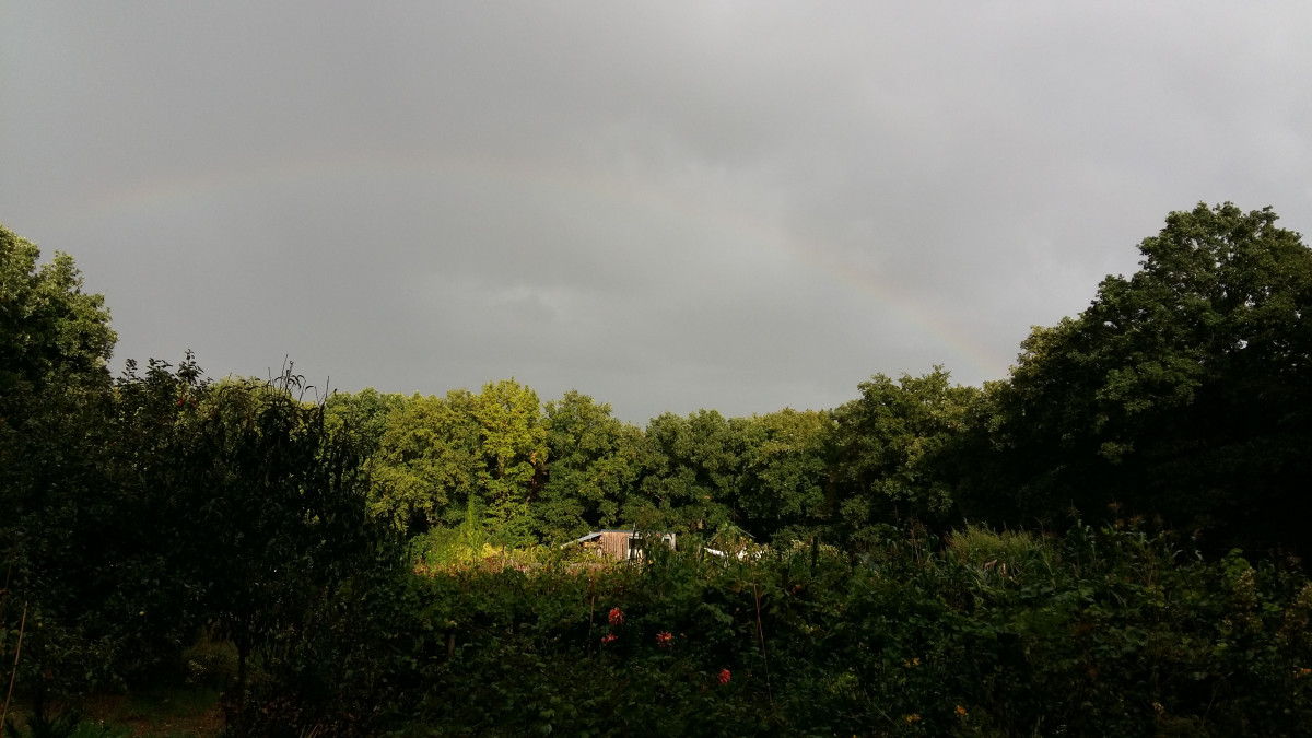 Samen met Anja bezitten we sinds november 2011 een leuk stukje grond, ongeveer 40 km van waar we wonen. Het stuk is totaal 1,8 hectare. De helft daarvan is gemengd bos: voornamelijk eiken en dennen. De rest was grasland en een rijbak van de lokale ponyclub. Op het grasland hebben we fruitbomen aangeplant en een aanzienlijk deel van het grasland heb ik omgevormd tot een moestuin. Die is met 1600m^2 enorm. Onze grond is geen ideale akkerbouwgrond, maar wordt met de jaren wel steeds beter. Paardenmest, lavagruis, bentoniet op tijd water geven (half geautomatiseerd) en hard werken levert resultaat. Het lukt ons steeds vaker meer te verbouwen dan we zelf op kunnen eten. Voor het merendeel van de groentes hoeven we niet meer naar de supermarkt.