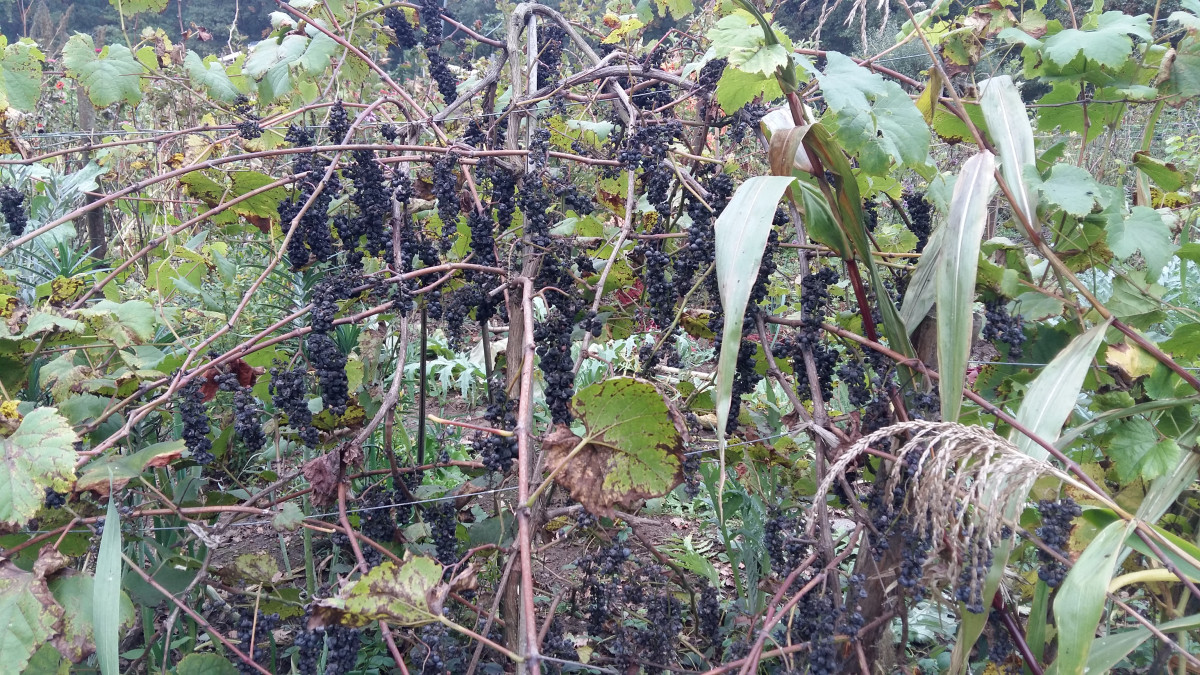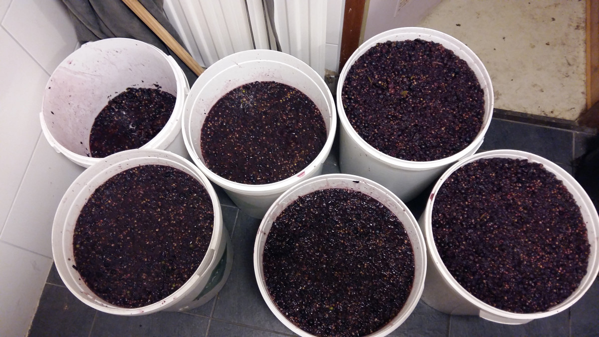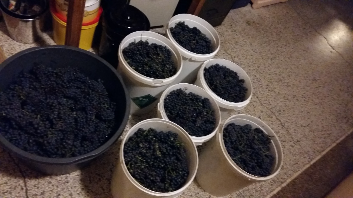 | zwarte bessen | Genoeg om 15 liter sap van te krijgen. Ik fermenteer de bessen en maak er cassis siroop van |