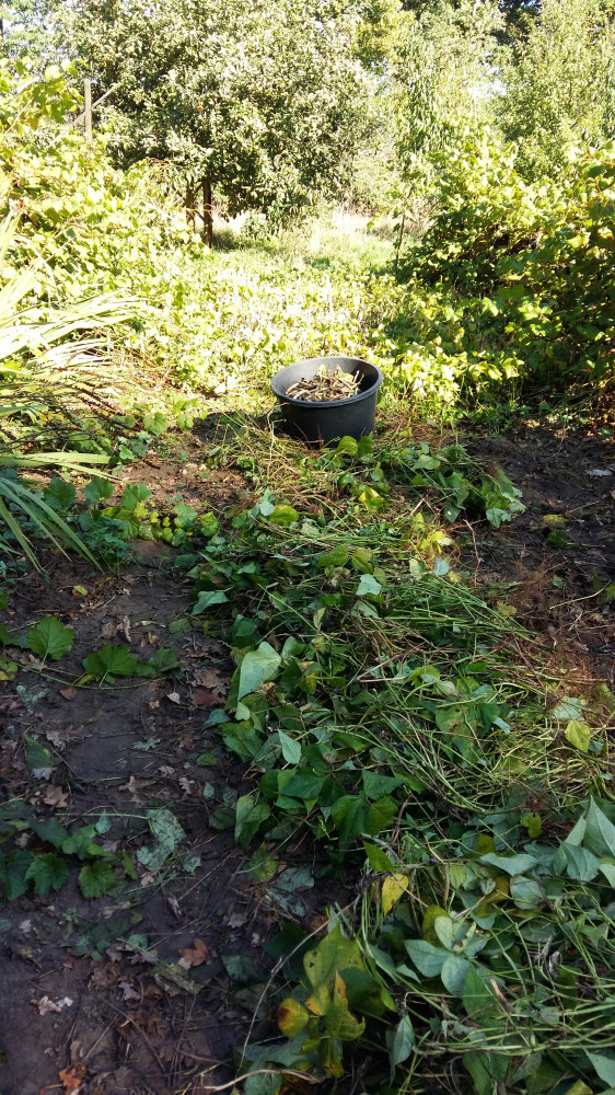 | zoete aardappelen | Groeit prima, mooi gewas met vele goede eigenschappen. Maar het zit niet erg in ons systeem om er veel van te eten. |